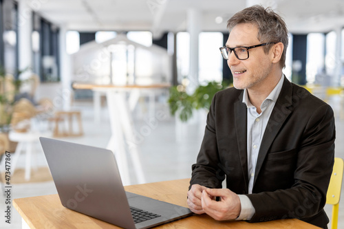 Thoughtful male professional with laptop sitting at office