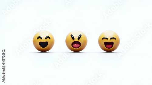Three 3D Emojis Displaying Happy, Angry and Sad Expressions on White Background
