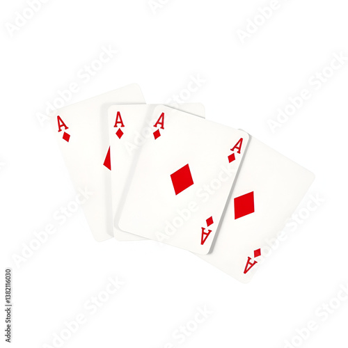 Three aces from a deck of cards flying mid-air, isolated on a transparent background