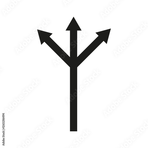 Three arrows direction. Road path symbol. Intersection navigation icon. Vector black illustration. EPS 10.