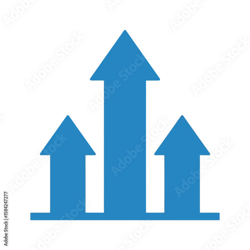 Three blue arrows pointing upwards, symbolizing growth and success isolated on white background
