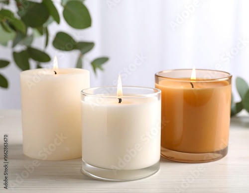Three candles on a table