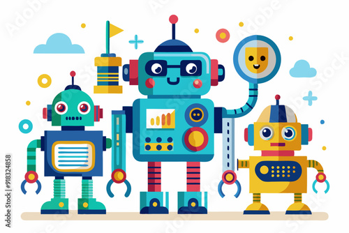 Three Cartoon Robots Standing Together