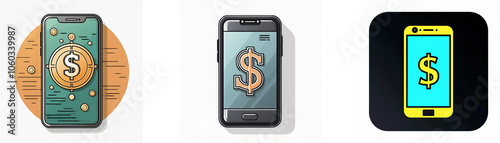 Three different illustrations of smartphones with a dollar sign displayed on the screen.
