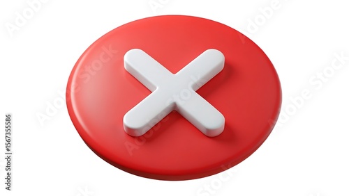 Three dimensional red circle with white x symbol representing a concept of error failure or cancellation isolated on white