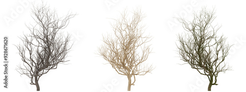Three Dried Dill Sprigs on transparent background