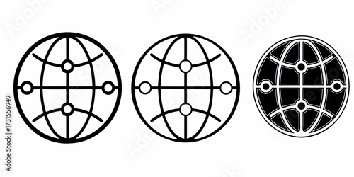 Three globe icons with network connections in varying styles and black and white color schemes shown
