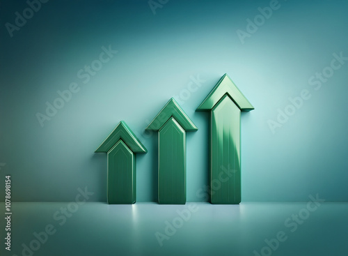 Three glossy green arrows point upwards against a blue-green background, symbolizing growth and success.