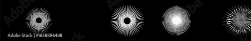 Three grayscale circular images, radiating outwards from a central point, set against a black background.