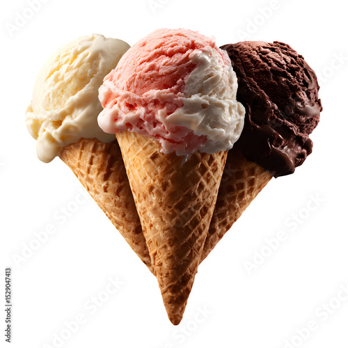 Three Ice Cream Cones isolated on transparent background