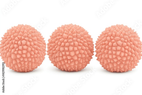 Three light peach colored textured spheres