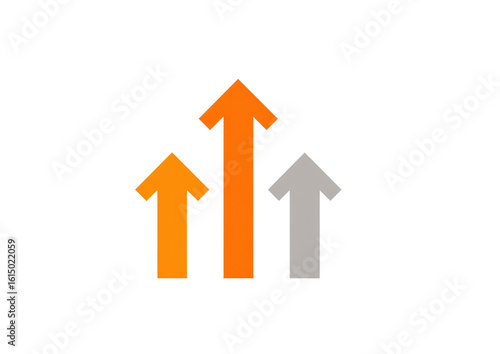 Three overlapping upward-pointing arrows, orange and gray, on a black background