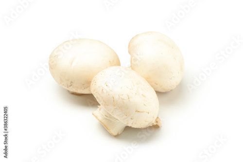 Three raw champignons isolated on white background