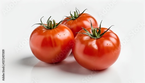 Three Ripe Red Tomatoes on White Background