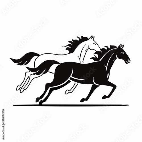 Three Running Horses Image vector. Black and white Running Horses Image vector on white background.