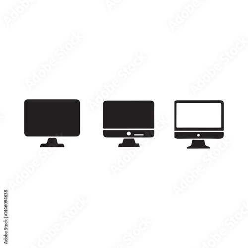 Three Simple Black Silhouette Computer Monitors.Three simple, solid black silhouette computer monitor icons on a white background.