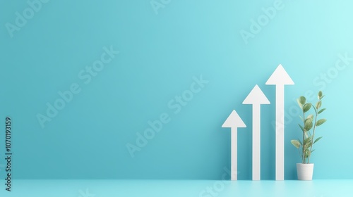 Three simple white arrows aligned vertically, moving up on a blue backdrop, no text, Photorealistic
