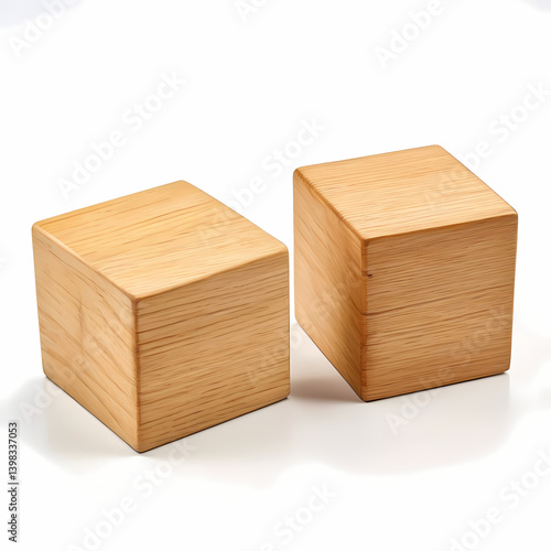 Three square wooden blocks on white background
