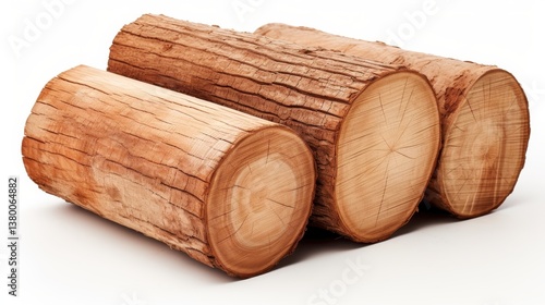 Three timber logs are stacked in an isolated area, displaying their smooth and rough surfaces. Each log shows unique grain patterns and natural color variations, emphasizing their rustic charm