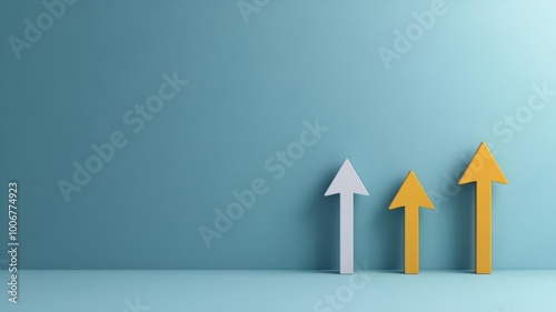 Three upward arrows representing growth on a blue background.