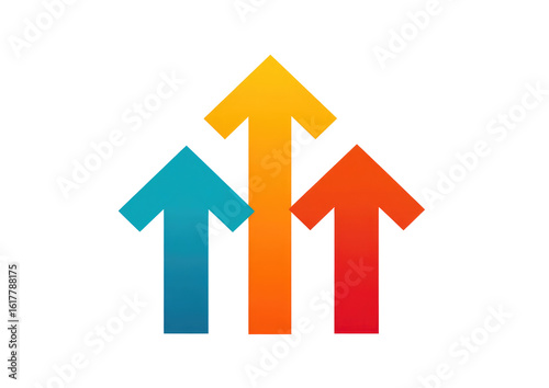 Three vibrant, upward-pointing arrows, gradient-colored, on a black background