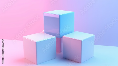 Three white cubes are stacked on top of each other. The cubes are pink and white, and they are arranged in a way that creates a sense of balance and stability
