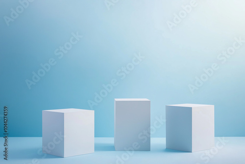 Three White Cubes on Blue Background Minimalist Product Display