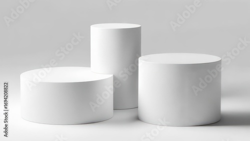 Three white cylinders on a plain background