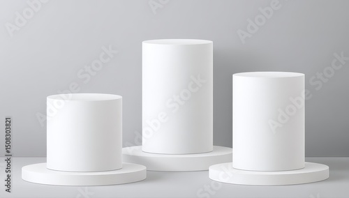 Three white cylinders on circular bases against a light gray background