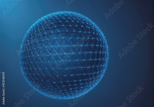 Three-Dimensional Geometric Sphere Rendered in Blue Against a Dark Background