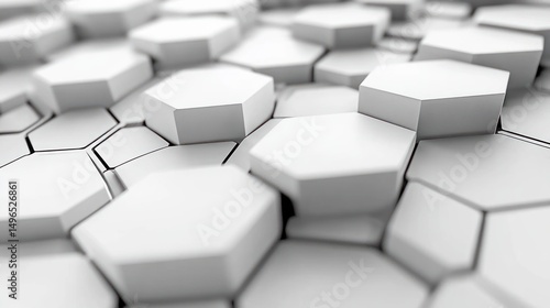 Three-dimensional white hexagonal tiles creating an abstract geometric pattern with depth and shadows
