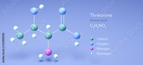 threonine, molecular structures, amino acid, 3d model, Structural Chemical Formula and Atoms with Color Coding