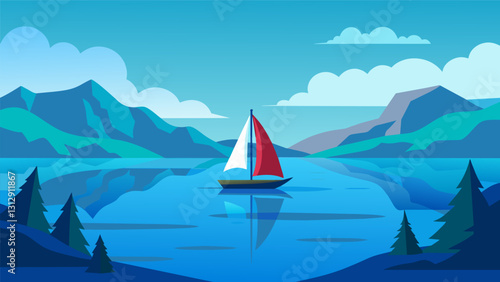 Through visualization the client envisions themselves on a peaceful sailboat gliding across a calm crystal blue lake.. Vector illustration