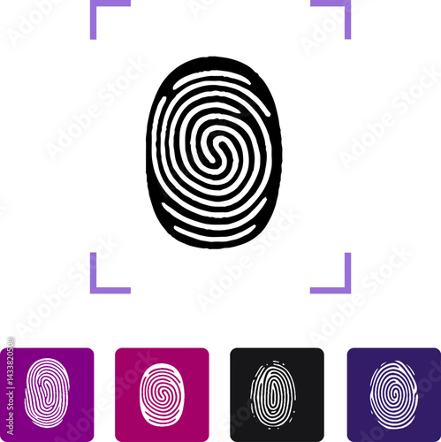 Thumb print for access. Personal property thumbprint pattern. Identity detection. Biometric identification. Vector