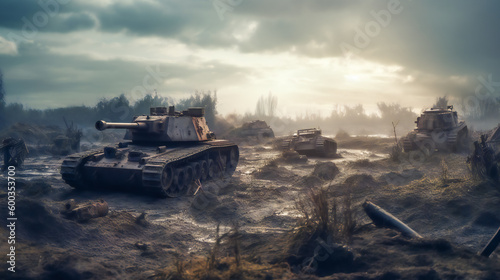 Thundering Tank on the Battlefield. In the Heart of the Battle. Generative AI