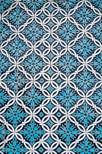 tile mosaic with oriental Arabic Uzbek pattern decorated with blue and white floral ornament