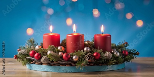 Tilt-Shift Photo: Advent Wreath with Four Red Candles - Fourth Advent, Christmas