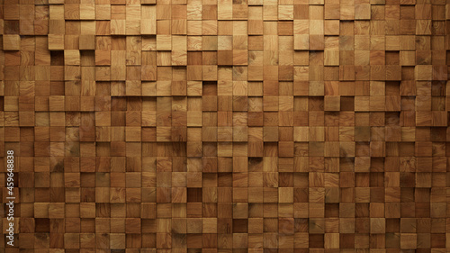 Timber, 3D Mosaic Tiles arranged in the shape of a wall. Wood, Soft sheen, Blocks stacked to create a Square block background. 3D Render