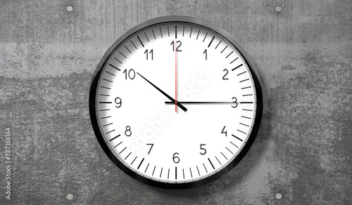 Time at quarter past 10 o clock - classic analog clock on rough concrete wall - 3D illustration