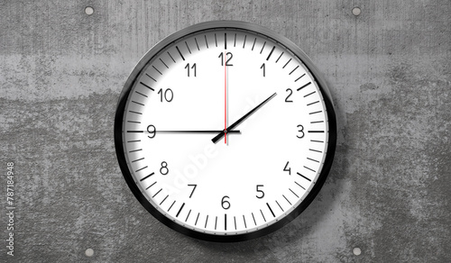 Time at quarter to 2 o clock - classic analog clock on rough concrete wall - 3D illustration