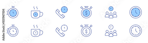 Time icon set in two styles, Duotone and Thin Line style. Editable stroke. deadline, sale time, teamwork, break time, clock, customer service