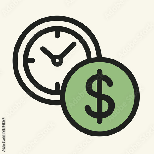 Time is Money Vector Icon – Minimalist Clock and Dollar Sign Illustration