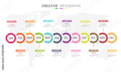 Time line, Timeline business for 12 months, 1 year, Timeline infographics design vector and Presentation business can be used for Business concept with 12 options, steps or processes.