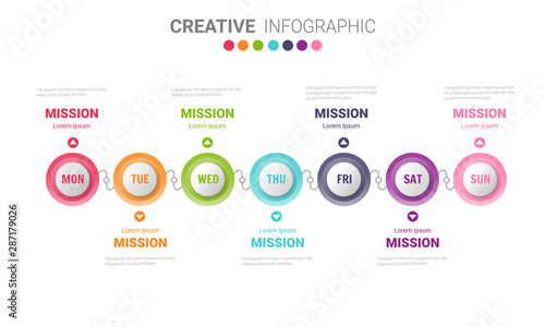 Time line, Timeline business for 7 day, week, Timeline infographics design vector and Presentation business can be used for Business concept with 7 options, steps or processes.