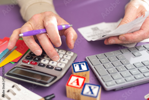 Time to pay taxes. A calculator and a computer keyboard for doing financial calculations or filing a tax return.