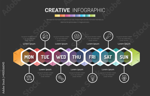 Timeline business for 7 day, 7 options, Timeline infographics design vector and Presentation business can be used for Business concept with 7steps or processes.
