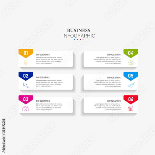 Timeline infographic design template icons with text boxes. Business concept with 6 steps.