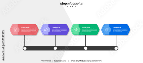 Timeline infographic line design with icons. Template for graph, diagram, presentations. Business concept with 4 options. Vector illustration.