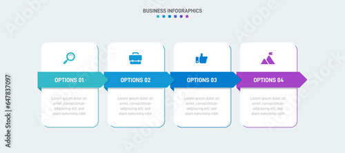 Timeline infographic with infochart. Modern presentation template with 4 spets for business process. Website template on white background for concept modern design. Horizontal layout.