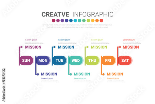 Timeline, Timeline business for 7 day, week, infographics design vector and Presentation can be used for Business concept with 7 options, steps or processes.